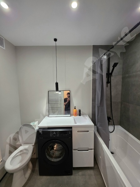 В квартире есть всё необходимое для комфортного проживания: удобная мебель на кухне и в комнате, а также вся необходимая техника — холодильник и стиральная машина. Санузел совмещённый, установлен современный душ.