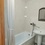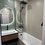 Санузел совмещенный: теплый пол, подвесной унитаз, ванная с душевой системой, стиральная машина, большой шкаф для хранения.