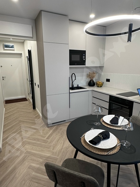- Современная кухня со встроенными посудомоечной машиной, духовкой, варочной панелью с 2 быстроразогревающимеся конфорками, фильтрами для питьевой воды с выводом на смеситель раковины;