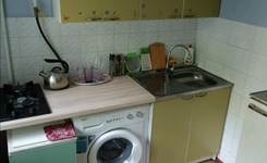 квартира на 8-м этаже, из мебели есть 2 шкафа, 2 кровати, стиральная машина, микроволновая печь, газовая плита.