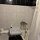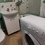 Санузел совмещенный: теплый пол, подвесной унитаз, ванная с душевой системой, стиральная машина, большой шкаф для хранения.