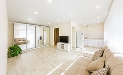 Bся мебель новая. Бeз животных. Есть кухонный гарнитур, индукционная варочная поверхность, чайник, микроволновка, холодильник, стиральная машина, кровать 140*200. Сушилка, утюг, гладильная доска, стол, стулья, шкафы для вещей. Все для комфортного проживания.