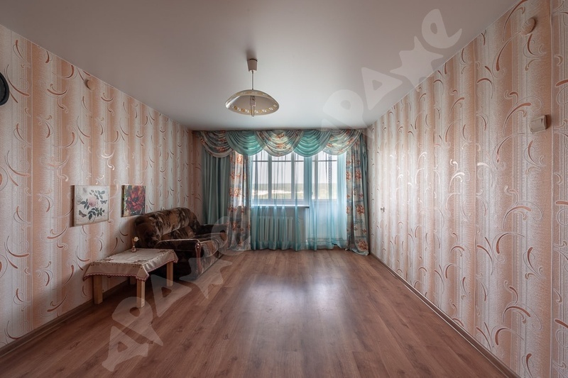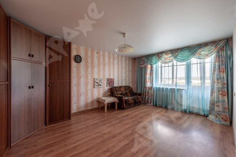 В пространстве гостиной особый уют создаёт панорамное окно с французским балконом. Дополнительно имеется застеклённая лоджия. Диван раскладывается - можно комфортно устроиться за просмотром кино на телевизоре с функцией SMART-TV.