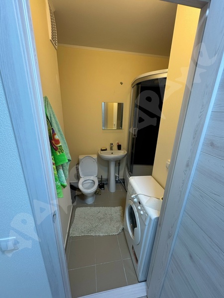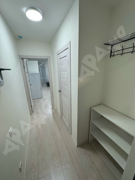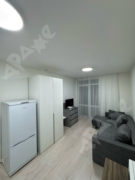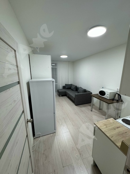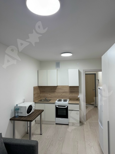 Площадь квартиры 21,4 кв.м., этаж 11/13. Во дворе есть детская и спортивная площадка, рядом школа и гипермаркет Лента. В квартире имеется все для проживания: диван, кухонный гарнитур, плита, холодильник, микроволновка, шкаф для одежды, стиральная машинка, телевизор, обеденный стол и стулья.