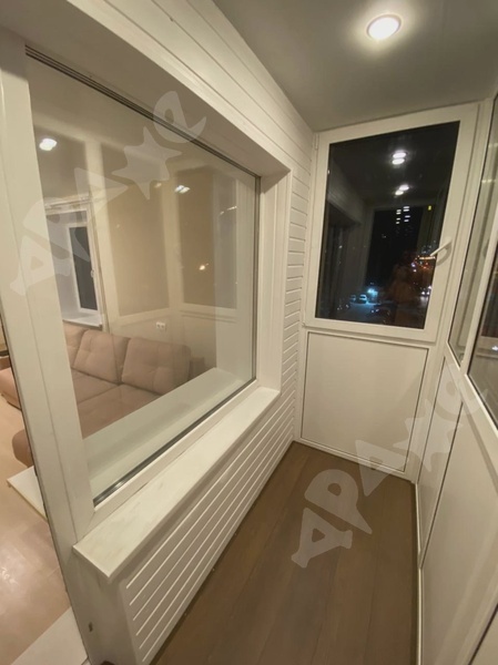В пространстве гостиной особый уют создаёт панорамное окно с французским балконом. Дополнительно имеется застеклённая лоджия. Диван раскладывается - можно комфортно устроиться за просмотром кино на телевизоре с функцией SMART-TV.