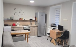 В квартире есть всё необходимое для проживания: кухонный гарнитур, плита, холодильник, обеденный стол, стиральная машина, пылесос, 2 дивана (раскладываются), шкаф-купе (2 шт).