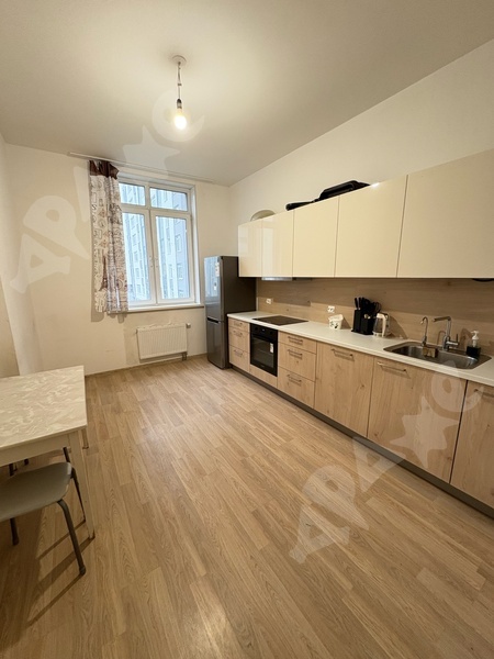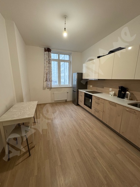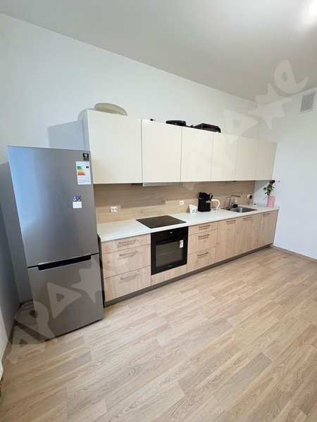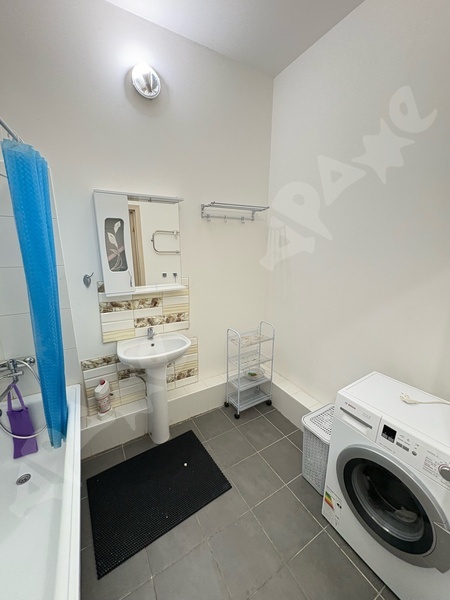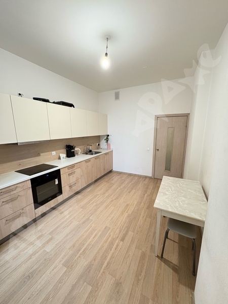 Большая спальня, в спальне имеется шкаф. Раздельный сан узел, большая ванная комната, стиральная машинка. Кухня просторная 14 кв.м. Встроенный гарнитур с плитой и духовкой, посудомоечная машина, холодильник, обеденный стол и стулья. В квартире хорошая шумоизоляция.