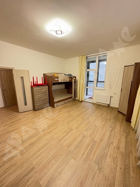 Квартира находится на 4 этаже в новом доме. Обширная прихожая с большим шкафом, просторная гостиная в которой имеется диван, 2 письменных стола, двухъярусная детская кровать, двухспальная кровать, шкаф, телевизор со спутниковым тв, домашний интернет.