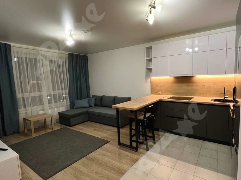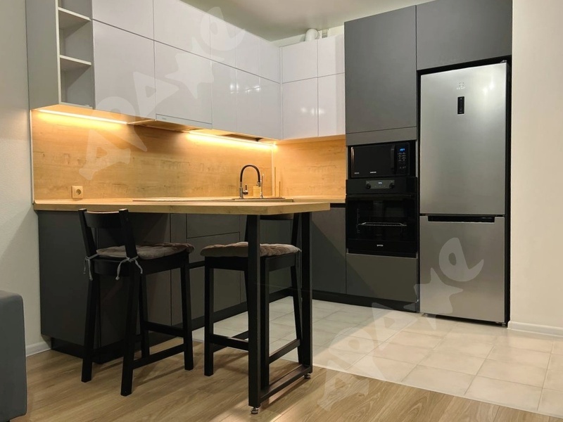Просторная кухня с необходимой посудой плавно перетекает в уютную гостиную с барной стойкой. Спальня и ванная комната позволят вам чувствовать себя комфортно и расслабленно после долгого дня. Места для хранения личных вещей есть в каждой комнате.