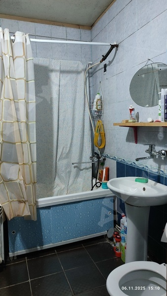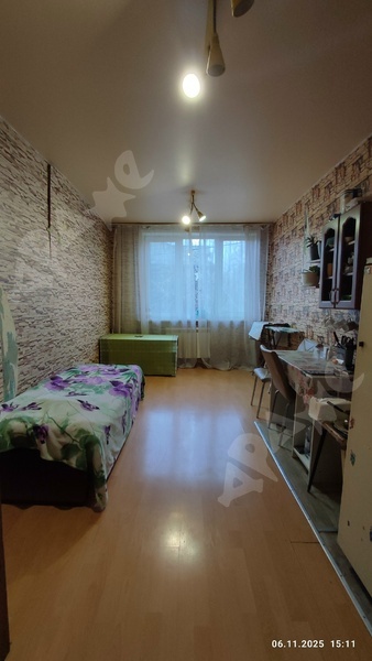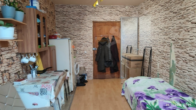 Комната в трёх-комнатной квартире, малонаселенная,только 1 соседка, из мебели есть кровать, стол, кухонные шкафчики, холодильник, стиральная машинка