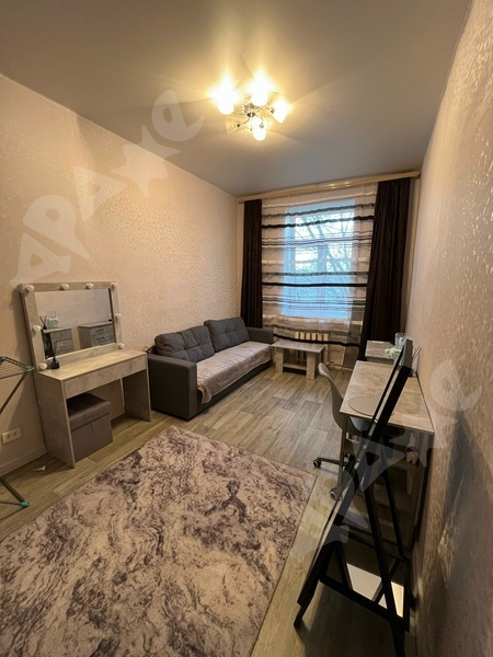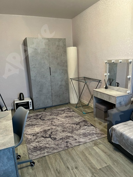 Из мебели: диван, комод, шкаф, стол компьютерный, стул компьютерный, туалетный столик с зеркалом и подсветкой, пуфик.