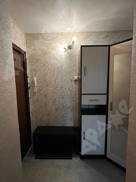 Квартира укомплектована: 2 дивана, кухонный гарнитур, холодильник, кухонный стол с табуретками, индукционная плита на одну конфорку, стиральная машина, сушилка для белья, большой шкаф в комнате, шкаф с вешалками в прихожей, стеллаж. В квартире никто не жил.