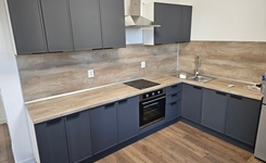 Во второй комнате диван, шкаф и комод На кухне гарнитур и обеденная зона