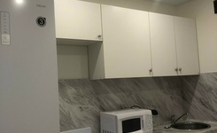 Квартира на 5этаже.Из мебели диван,шкаф,стол ,холодильник,стир.машина, чайник,микроволновая печь .