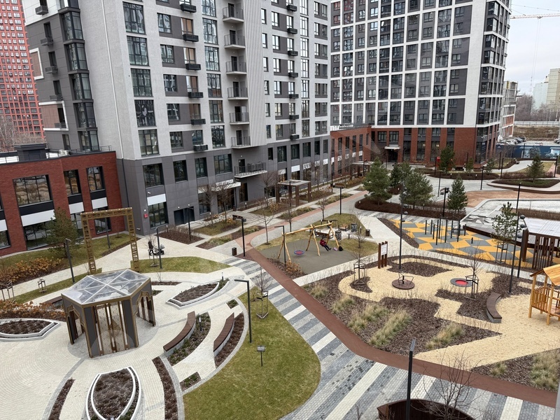 Закрытый двор, парковочные места, рядом остановки общественного транспорта, школы и детсады.