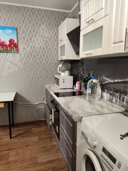 Квартира с хорошим ремонтом, в местах общего пользования есть необходимая для проживания техника: холодильник, микроволновка, чайник, варочная поверхность, стиральная машинка, пылесос. Также есть места хранения для каждого жильца в ванной, в коридоре.