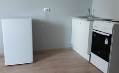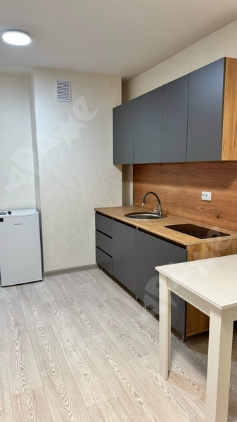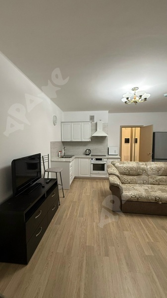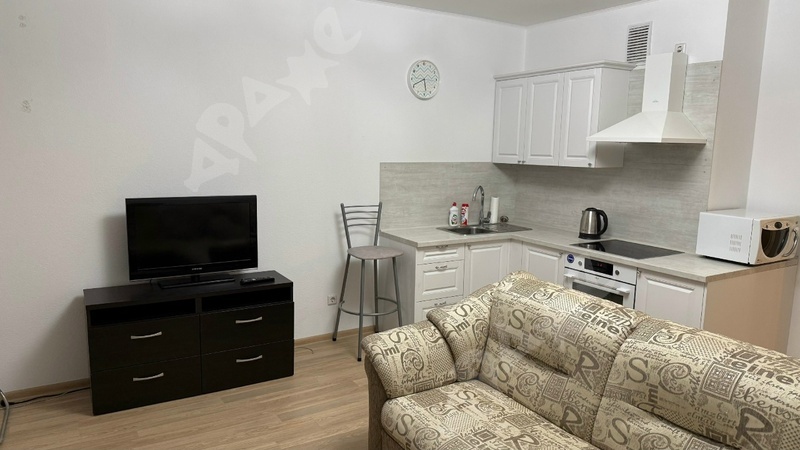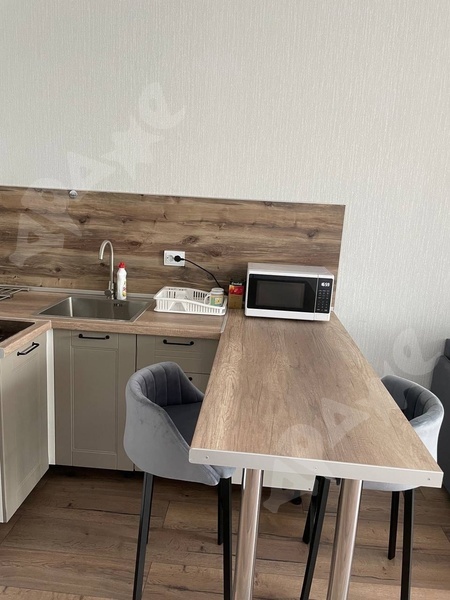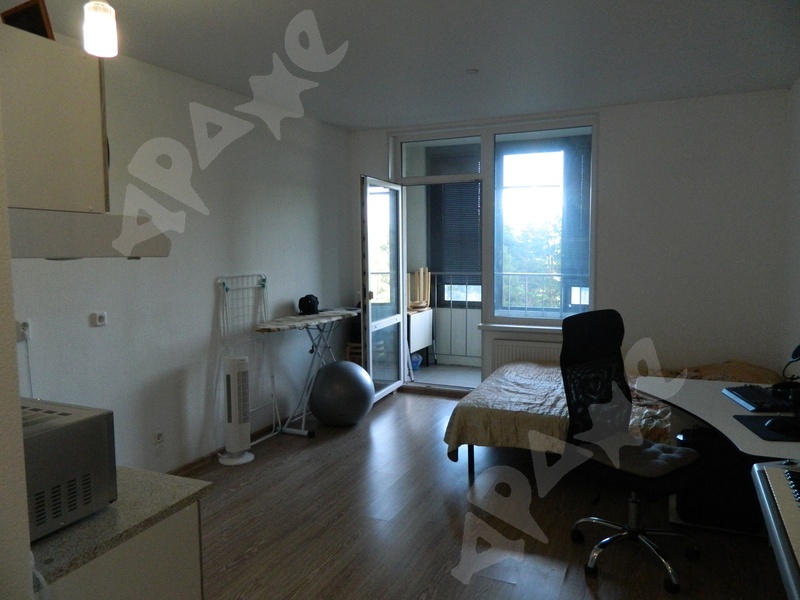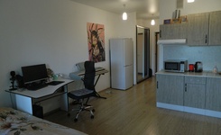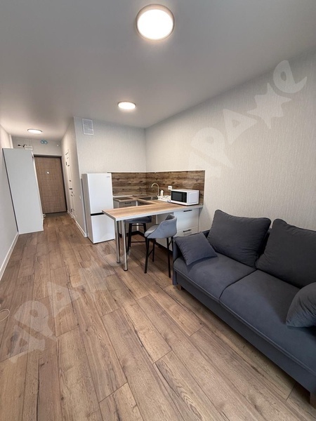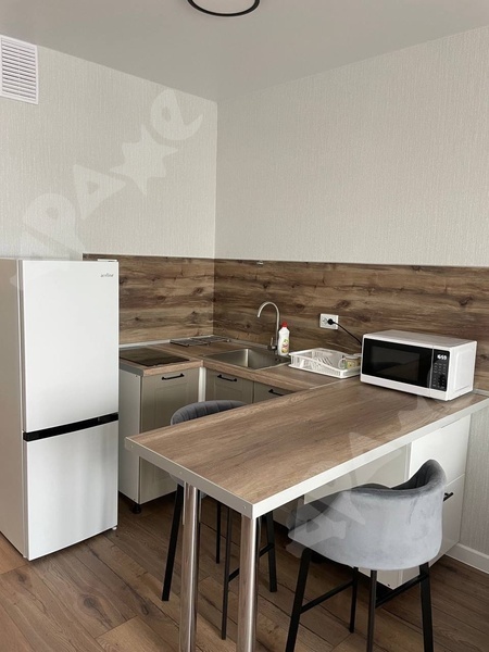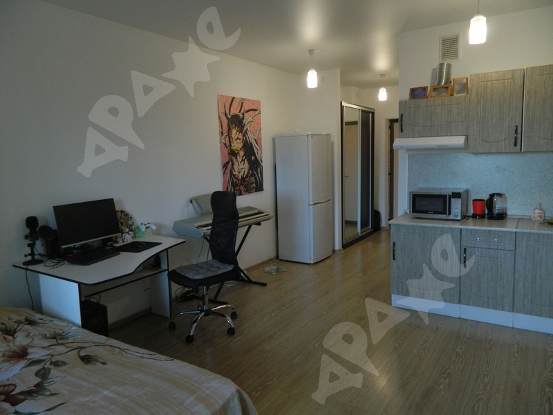 Показать полностьюСдается 1комнатная квартира-студия 30 м2. Большая лоджия. Полностью укомплектована современной мебелью (кухонный гарнитур, диван-кровать, шкаф, стол и стулья, прихожая, тумба под ТВ, журнальный столик); бытовой техникой (холодильник, стиральная машина, СВЧ-печь, электроплита, телевизор, пылесос, чайник, утюг); всеми нужными бытовыми мелочами (гладильная доска, сушилка для белья, зеркала, постельные принадлежности, полотенца, часы, мусорные ведра, коврики и др). Можно заехать и жить сразу без дополнительных затрат. Конечная остановка 83 автобуса, рядом лес. Страховой депозит 22 000 руб. Желательно проживание одного некурящего человека без домашних животных.