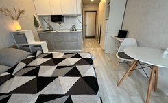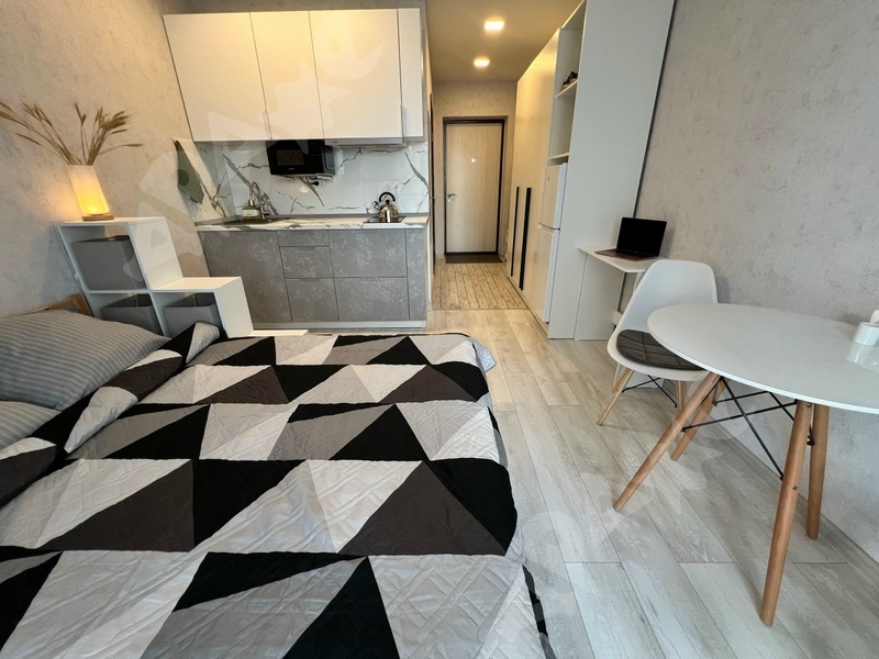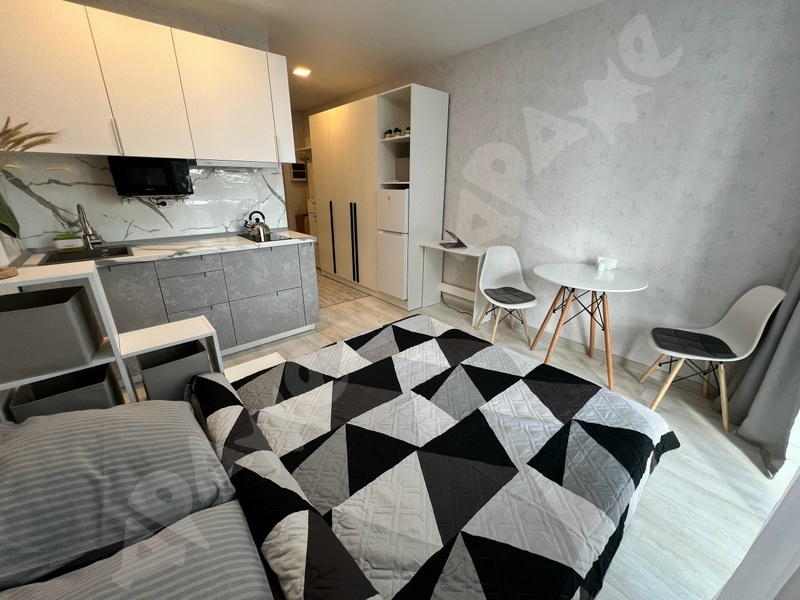 В студии есть все необходимое для жизни, мебель, бытовая техника, посуда.