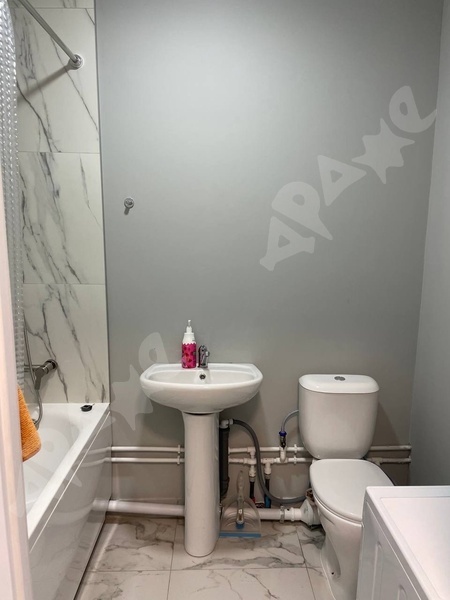 Сантехника находится в хорошем состоянии, в комнате установлен радиатор с регулируемым отоплением. По всей квартире установлены натяжные потолки.