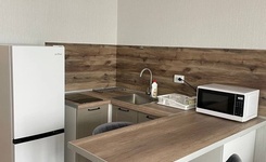 В квартире есть всё необходимое: шкаф купе, холодильник, стиральная машина, стол, кухонный гарнитур, кровать с матрасом, микроволновка, чайник.