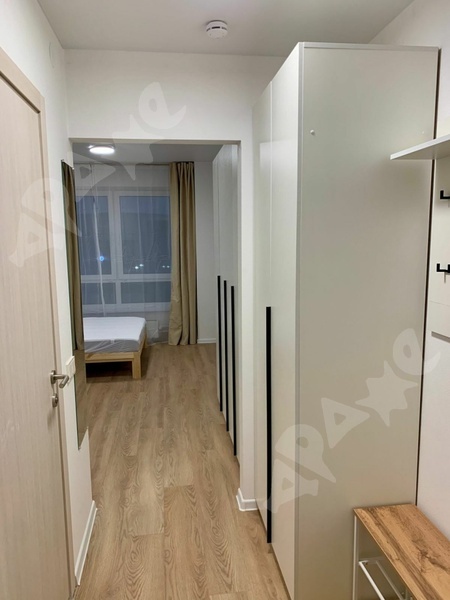 Показать полностьюСдается 1комнатная квартира-студия 30 м2. Большая лоджия. Полностью укомплектована современной мебелью (кухонный гарнитур, диван-кровать, шкаф, стол и стулья, прихожая, тумба под ТВ, журнальный столик); бытовой техникой (холодильник, стиральная машина, СВЧ-печь, электроплита, телевизор, пылесос, чайник, утюг); всеми нужными бытовыми мелочами (гладильная доска, сушилка для белья, зеркала, постельные принадлежности, полотенца, часы, мусорные ведра, коврики и др). Можно заехать и жить сразу без дополнительных затрат. Конечная остановка 83 автобуса, рядом лес. Страховой депозит 22 000 руб. Желательно проживание одного некурящего человека без домашних животных.