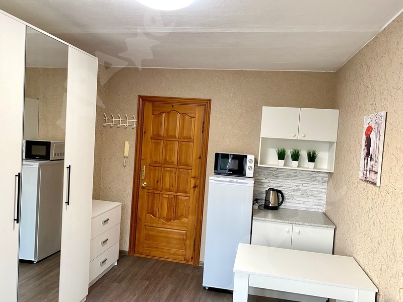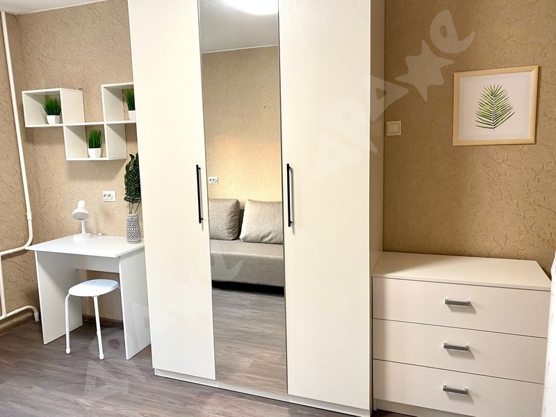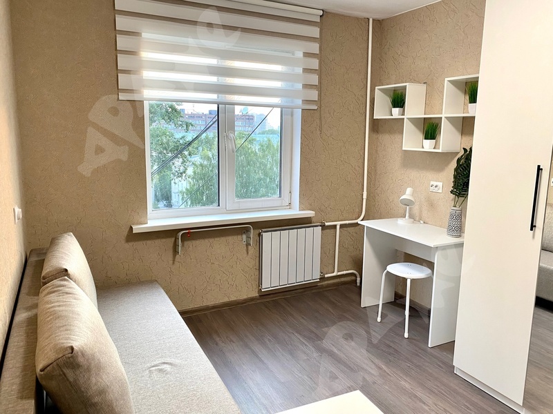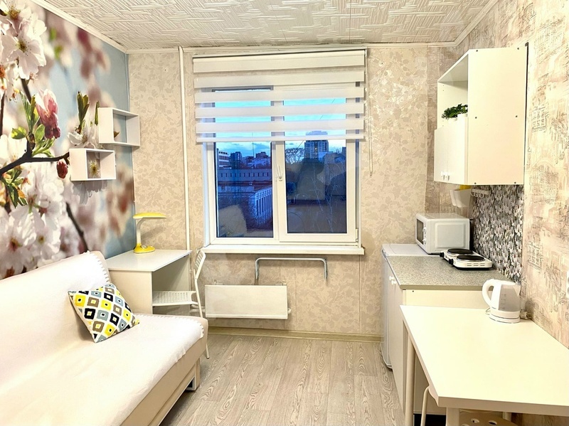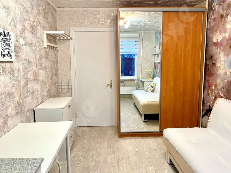 Комната на 8/9 этаже, в квартире секционного типа. Секция очень чистая, спокойная. Соседи доброжелательные. Комната уютная, установлена новая мебель и техника (холодильник, микроволновка, электроплитка, чайник, стиральная машинка).