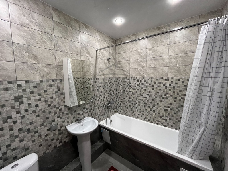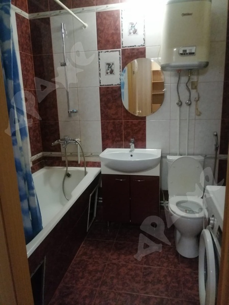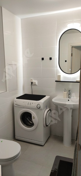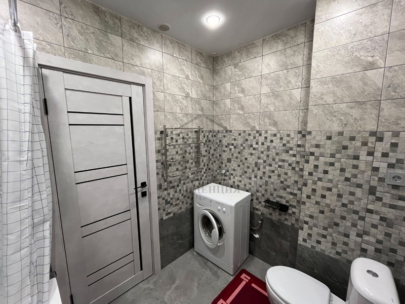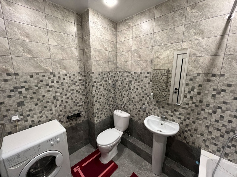 Этаж 15/24, без балкона, ремонт от застройщика, кондиционер, фильтр питьевой воды, холодильник, микроволновка, чайник, посудомоечная машина, стиральная машина, кровать с подъёмным механизмом, диван, который раскладывается.