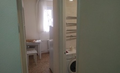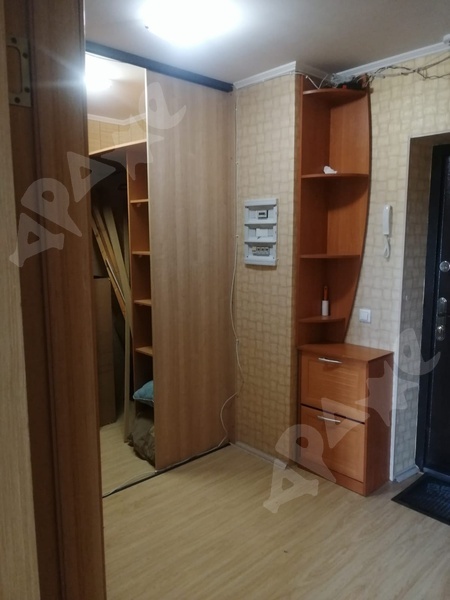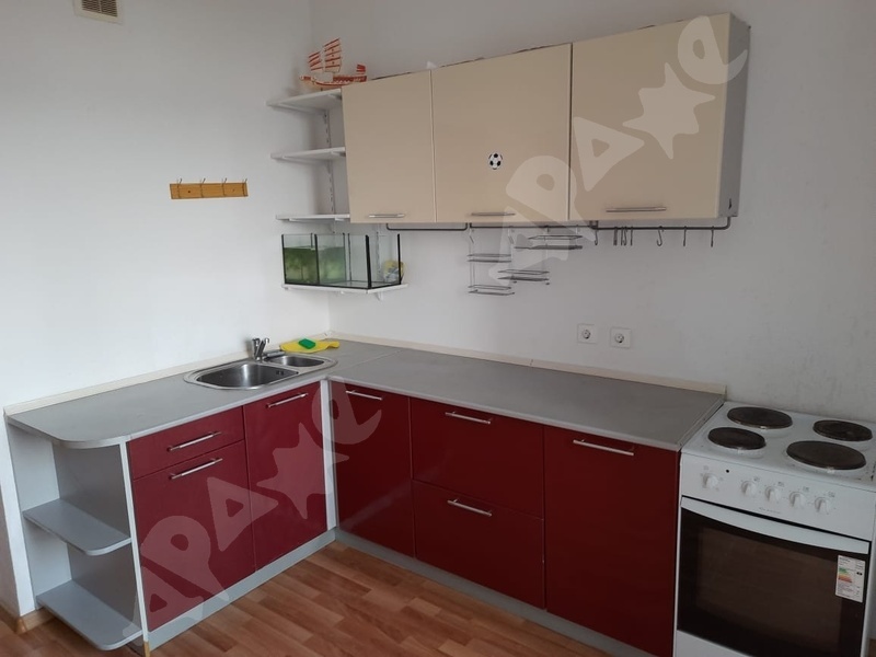 Квартира укомплектована: 2 дивана, кухонный гарнитур, холодильник, кухонный стол с табуретками, индукционная плита на одну конфорку, стиральная машина, сушилка для белья, большой шкаф в комнате, шкаф с вешалками в прихожей, стеллаж. В квартире никто не жил.
