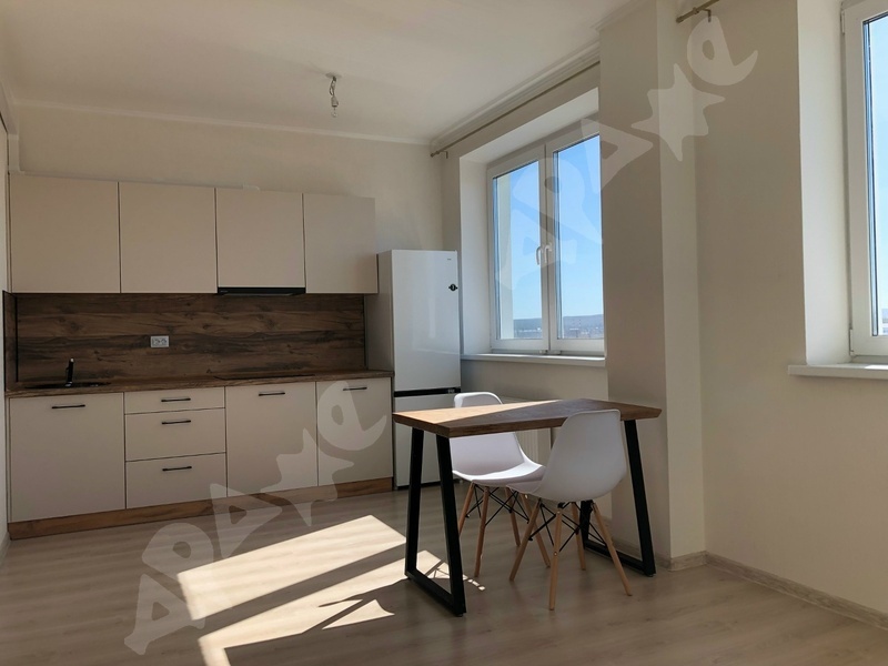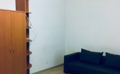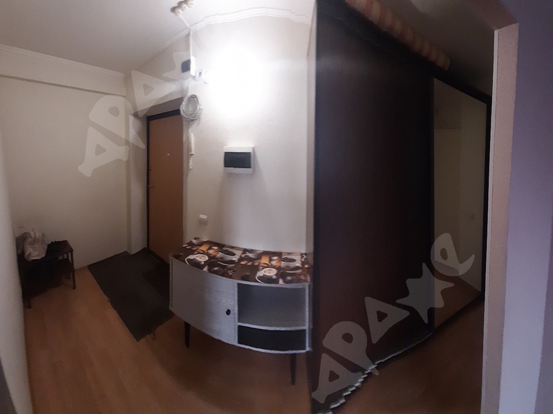 Квартира 27 кв. м. Этаж 6/14. В квартире застекленная лоджия 10 кв.м и все окна (стеклопакеты). Санузел совмещен. Есть все необходимое: гардеробная, шкаф, диван, кухонный гарнитур, стол, электрическая плита, холодильник. Двор огорожен, шлагбаум. В подъезде консьерж. Лифты грузовой и пассажирский. Под окнами автобусная остановка. В шаговой доступности, продуктовые магазины.