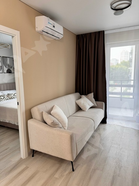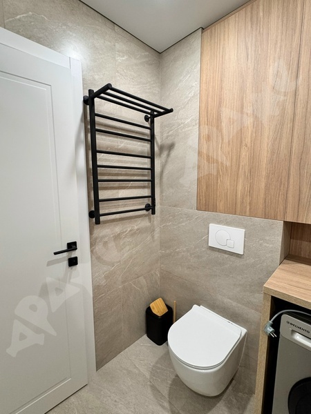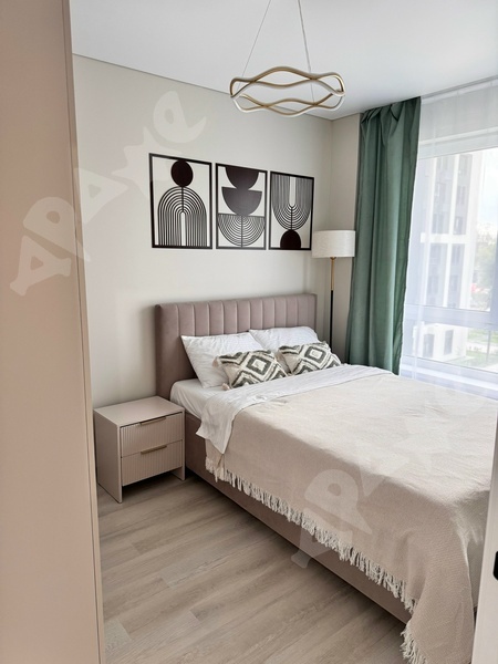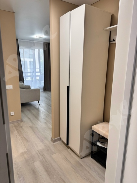 Этаж 15/24, без балкона, ремонт от застройщика, кондиционер, фильтр питьевой воды, холодильник, микроволновка, чайник, посудомоечная машина, стиральная машина, кровать с подъёмным механизмом, диван, который раскладывается.