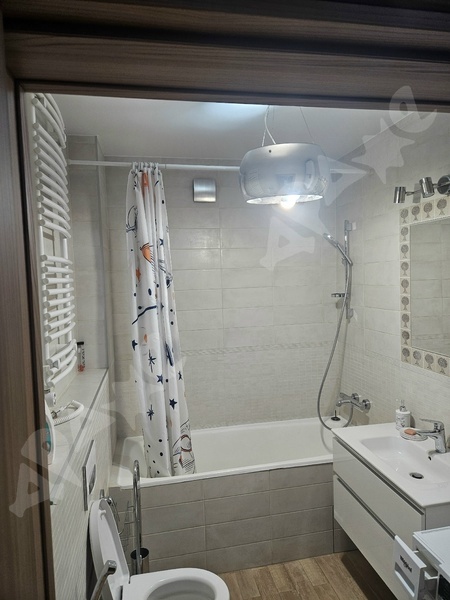 Сан.узел смежный. Квартира мебелирована. Техника: кондиционеры, телевизоры, холодильник, посудомоечная машина, стиральная машина, духовой шкаф, вытяжка, электро плита, бойлер.