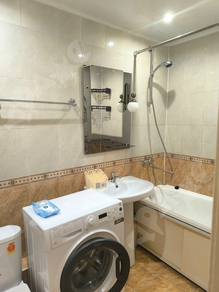 Квартира 27 кв. м. Этаж 6/14. В квартире застекленная лоджия 10 кв.м и все окна (стеклопакеты). Санузел совмещен. Есть все необходимое: гардеробная, шкаф, диван, кухонный гарнитур, стол, электрическая плита, холодильник. Двор огорожен, шлагбаум. В подъезде консьерж. Лифты грузовой и пассажирский. Под окнами автобусная остановка. В шаговой доступности, продуктовые магазины.