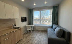 Новая квартира-студия 20, 2 кв. м. на втором этаже. Новый дом в квартале "Депо" от застройщика "Брусника". Свежий ремонт. Современный уютный двор и места общего пользования. Из мебели и техники имеется: кухонный гарнитур, холодильник, микроволновая печь, стиральная машина, душевая кабина, телевизор, шкаф, стол, стулья, диван, пылесос, посуда. Для 1-2 х человек, без животных. Долгосрочно. Страховой депозит составляет 25 000.