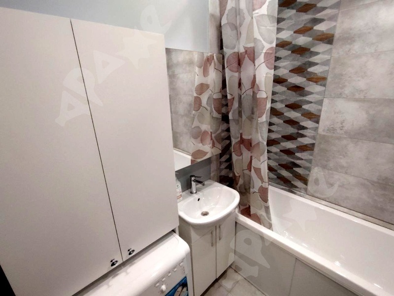 В квартире сделан качественный ремонт, санузел в плитке, кухонный гарнитур с раковиной и варочной поверхность, вытяжка, холодильник.
