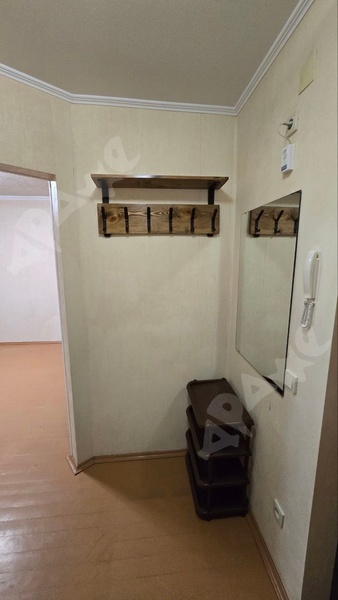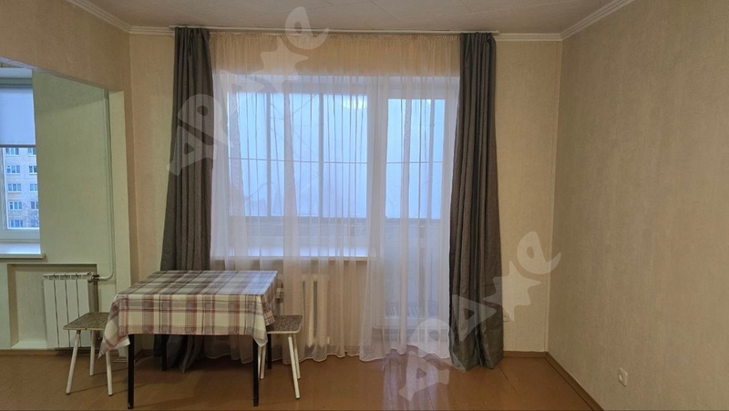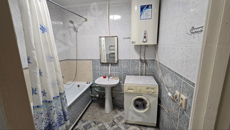Квартира 27 кв. м. Этаж 6/14. В квартире застекленная лоджия 10 кв.м и все окна (стеклопакеты). Санузел совмещен. Есть все необходимое: гардеробная, шкаф, диван, кухонный гарнитур, стол, электрическая плита, холодильник. Двор огорожен, шлагбаум. В подъезде консьерж. Лифты грузовой и пассажирский. Под окнами автобусная остановка. В шаговой доступности, продуктовые магазины.