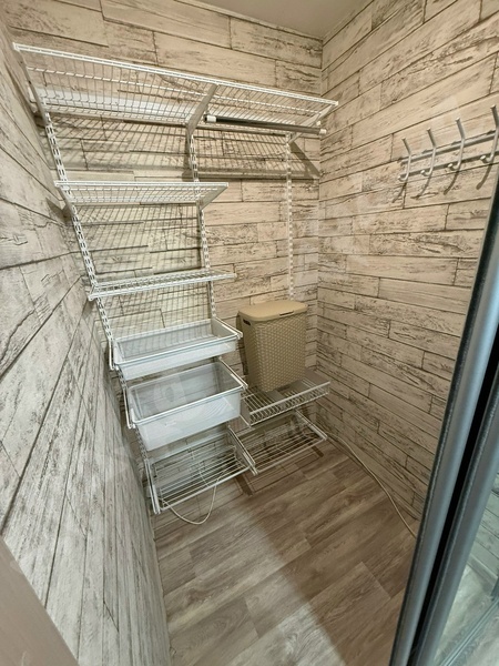 Имеется: диван, кухонный гарнитур, холодильник, стиральная машина, электрическая плита, чайник, СВЧ, шкаф-купе, гардеробная зона с навесной системой хранения.