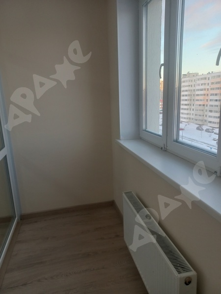 Из мебели: 2 спальных места, места для хранения, кухонный гарнитуп, электрическая плита, холодильник, стиральная машина, микроволновка, чайник, большая тёплая лоджия.