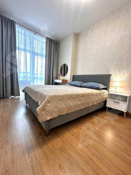 Квартира оснащена необходимой мебелью (кухонный гарнитур с встроенной техникой, диван раскладной, двух спальная кровать с ортопедическим матрасом (вам не придется спать на диване), шкаф купе во всю стену до потолка, зеркала, прикроватные тумбы , туалетный столик и др) и техникой (телевизор, посудомоечная машина, кондиционер - очень важная опция летом, встроенная микроволновка, стиральная машина, эл. полотенцесушитель).