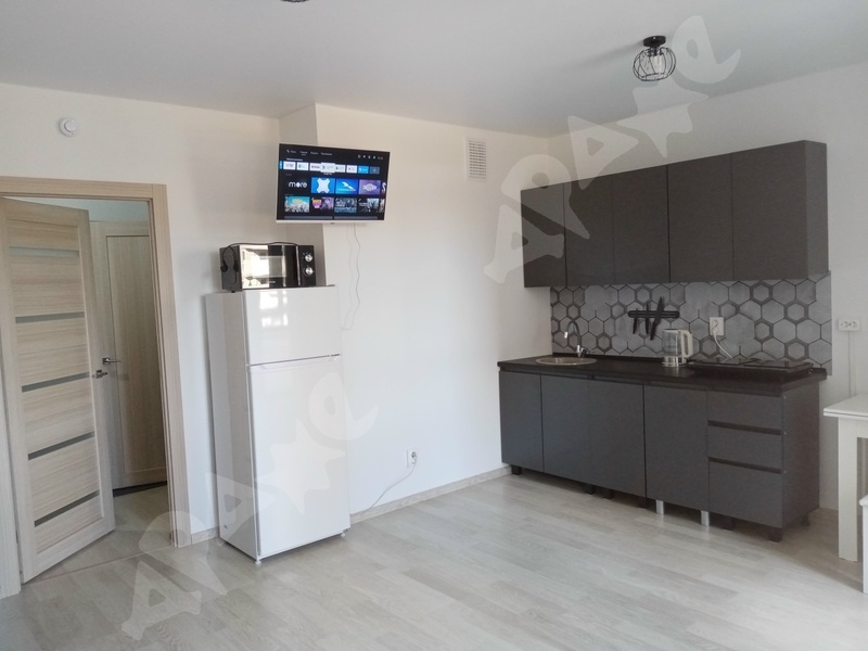 Площадь квартиры 25.3, лоджия, этаж 2/16, сан. узел совмещенный. Евро ремонт: натяжные потолки, пластиковые окна, ламинат. В доме видеонаблюдение, охрана, детская площадка, датчики пожарной сигнализации в квартире. Студия полностью готова к проживанию: холодильник, стиральная машина, микроволновая печь, плита электрическая, чайник, телевизор, места для хранения, раскладной диван. Водоснабжение и отопление по счётчикам, показания отправляются автоматически. Рядом магазины, дет. сады, школы, парикмахерская, пункты выдачи. Без животных.