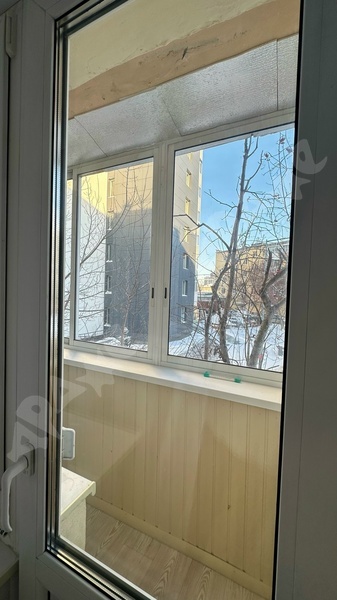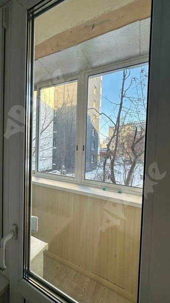 Окна из комнат выходят во двор с видом на древесный массив, соседний дом в 100 метрах и, стоя на балконе, вы не будете упираться в соседские окна.