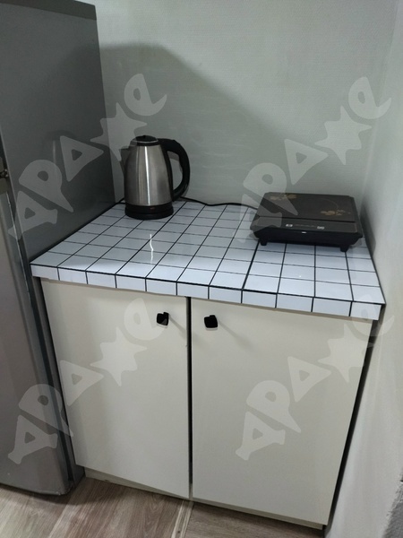 Мебель: шкаф, прихожая, кухонный гарнитур, микроволновка, индукционная плитка, чайник, холодильник.