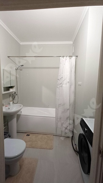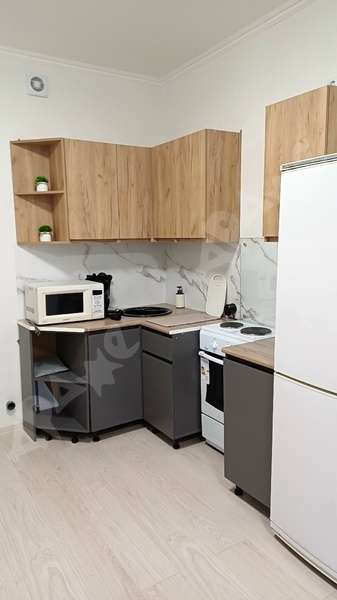 Вся необходимая мебель и техника для жизни: диван, шкаф, телевизор, стиральная машина, холодильник, плита, микроволновка, а также оборудованная кухня.