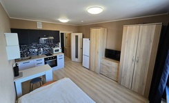 Отличный свежий ремонт, квартира чистая. Находится на 19 этаже. Есть собственный балкон. Вся необходимая техника в наличии: стиральная и посудомоечная машины, холодильник, духовой шкаф, варочная панель, вытяжка, микроволновка.