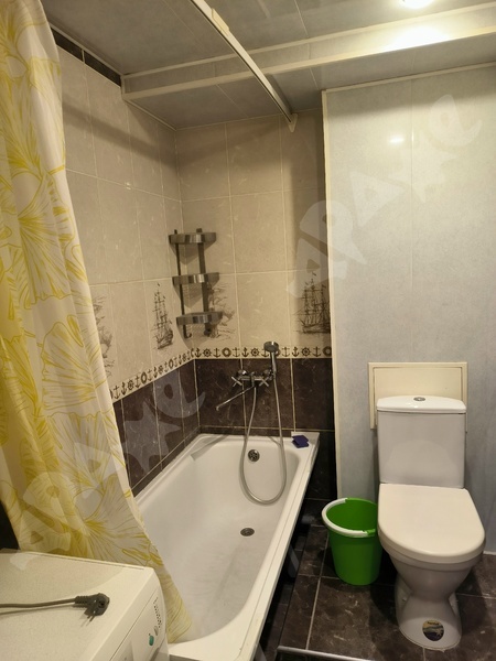 Есть: Кухонный гарнитур, небольшой холодильник, микроволновка, телевизор, стиральная машина с функцией сушки белья новая, интернет включен в стоимость.