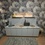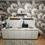Уютная комната с большой двуспальной кроватью, большим диваном, комодом и шкафом.