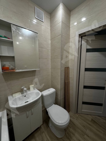 В квартире сделан качественный ремонт, санузел в плитке, кухонный гарнитур с раковиной и варочной поверхность, вытяжка, холодильник.
