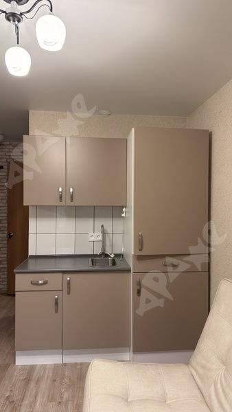 В квартире сделан качественный ремонт, санузел в плитке, кухонный гарнитур с раковиной и варочной поверхность, вытяжка, холодильник.