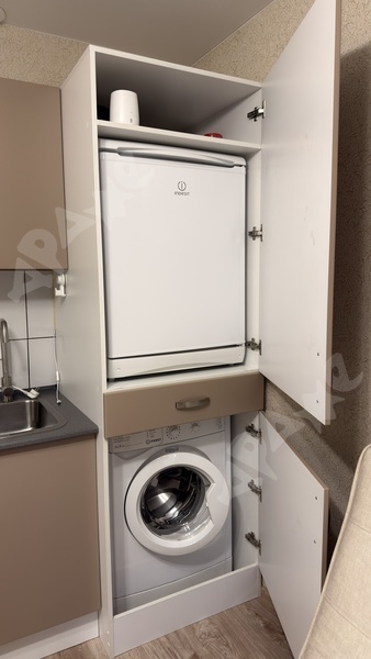 В квартире имеется два шкафа. Диван. Стиральная машина. Мебель и бытовая техника новые.