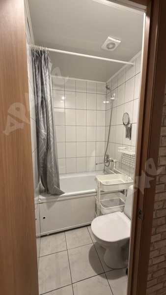 В квартире есть всё необходимое для комфортного проживания: удобная мебель на кухне и в комнате, а также вся необходимая техника — холодильник и стиральная машина. Санузел совмещённый, установлен современный душ.