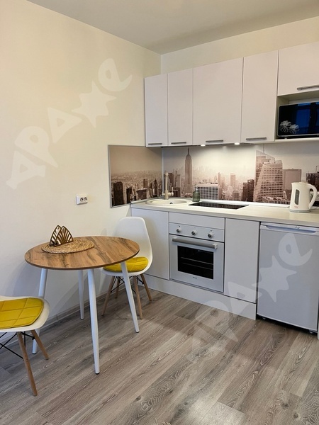 Сдается на длительный срок новая, со свежим ремонтом и мебелью квартира-студия в современном районе. Квартиру изначально планировали сдавать посуточно, поэтому есть все и даже больше: фен, банные полотенца, постельное белье,утюг, посуда, столовые приборы, бокалы,стаканы на 4 персоны,новая сковородка ,кастрюля ,новое ведро швабра .В квартире есть вся необходимая техника: холодильник, микроволновая печь, чайник, смарт-ТВ, стиральная машина, фен, утюг.